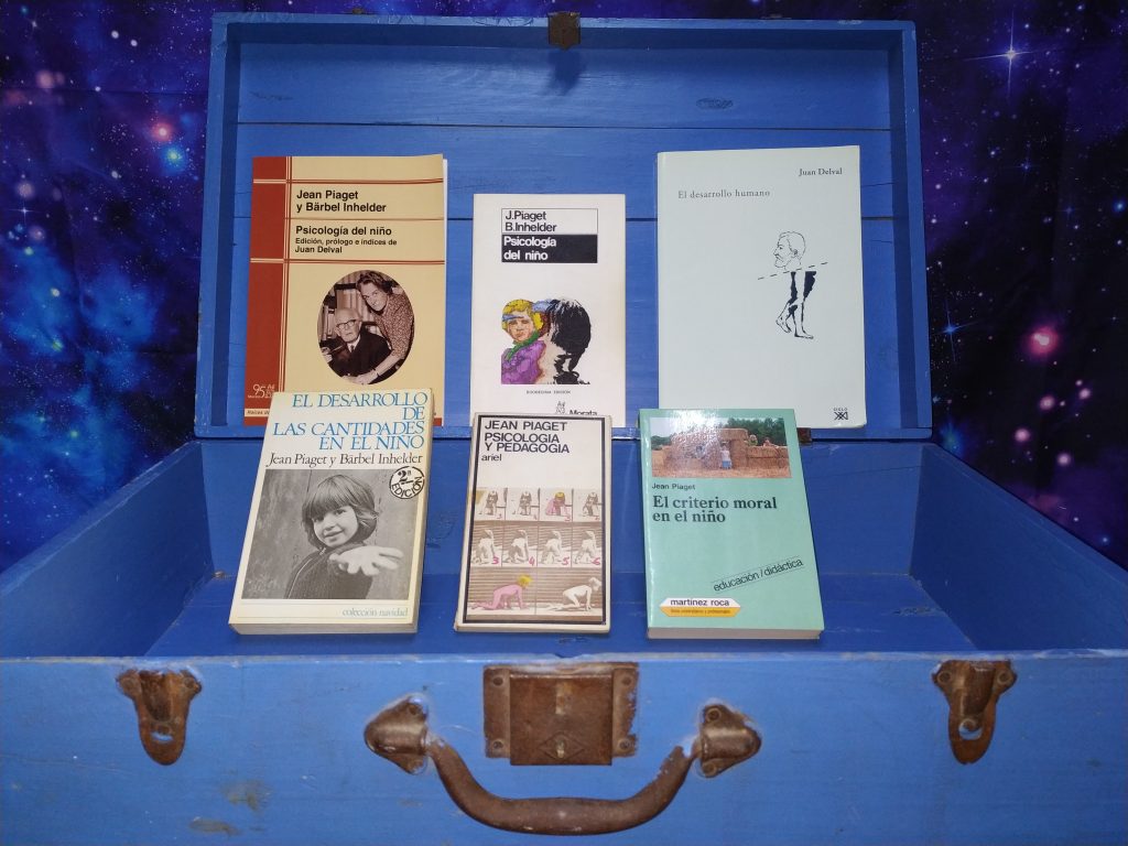 Estos son los libros que tengo de Piaget o sobre Piaget y que he utilizado para hacer los vídeos que hay más arriba. En mi opinión, los imprescindibles son «Psicología del niño», de Piaget, y «El desarrollo humano», de Juan Delval. Por si te interesa profundizar en el tema, más abajo te facilito la compra de estos libros y de otros cuantos más, algunos también escritos por Piaget y otros escritos por otros autores pero que también tratan sobre la teoría del desarrollo humano de Piaget.